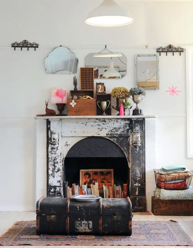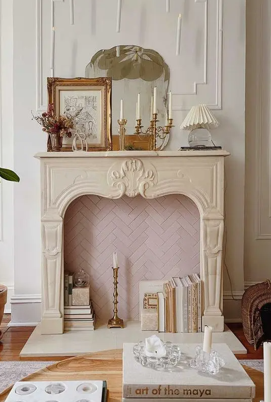 Stack books, add lanterns, or display vintage finds inside your fireplace. This creates visual interest and gives your living space character without feeling cluttered. Mix textures and tones for a balanced, curated look.