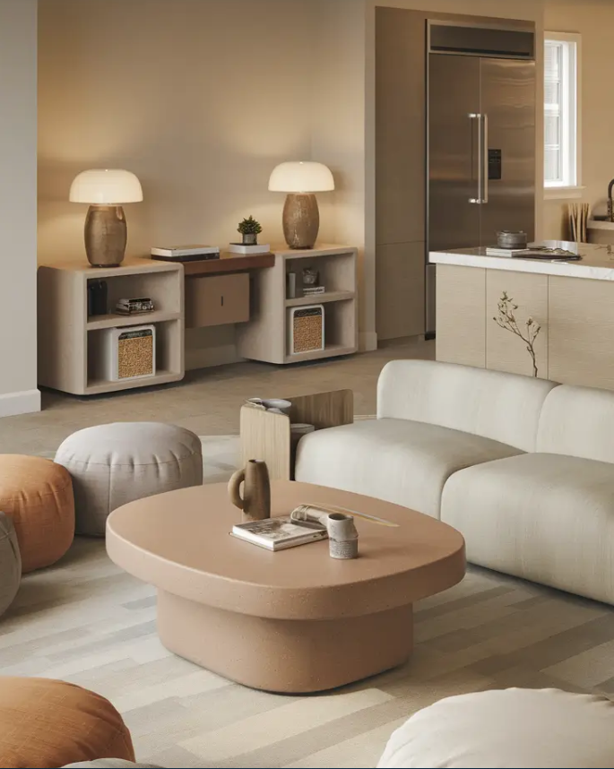 Looking ahead, I expect open kitchen living room ideas to lean into warm minimalism, quiet tech, and flexible furnishings. I keep the concept calm with matte woods and plaster-like tones, while appliances slip behind panels for a unified read. Seating stays low and considered, and tables are chosen for real hosting needs. The plan remains adaptable for work, meals, and daily shifts.