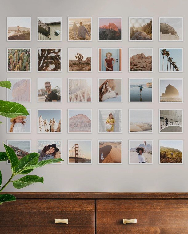 The grid layout is simple yet powerful. Frames line up in perfect rows and columns, forming a box-like arrangement. Each photo looks neat, and no single one overshadows the other.