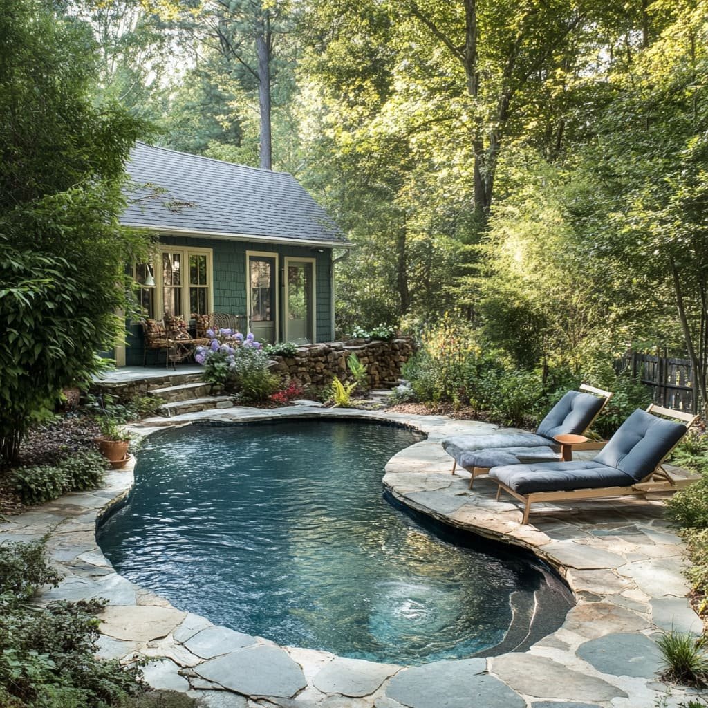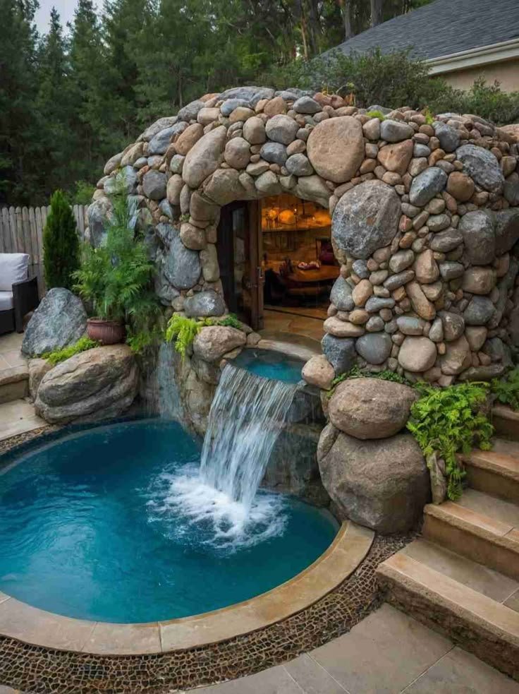 Adding a small waterfall or rock feature completes the design. The pool doesn’t need to be large; even a few feet deep is enough for cooling off.
