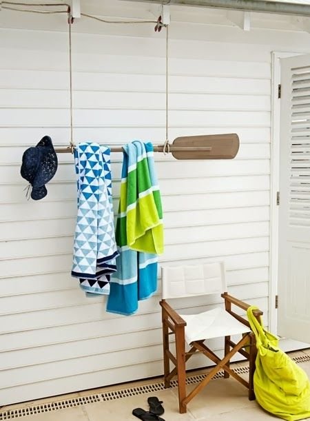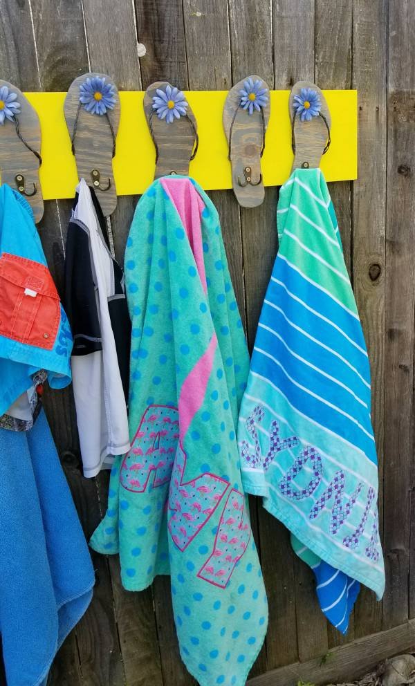This idea keeps towels within easy reach. Fences near the pool become more than a safety barrier they also store towels neatly. Hooks are easy to replace if damaged.