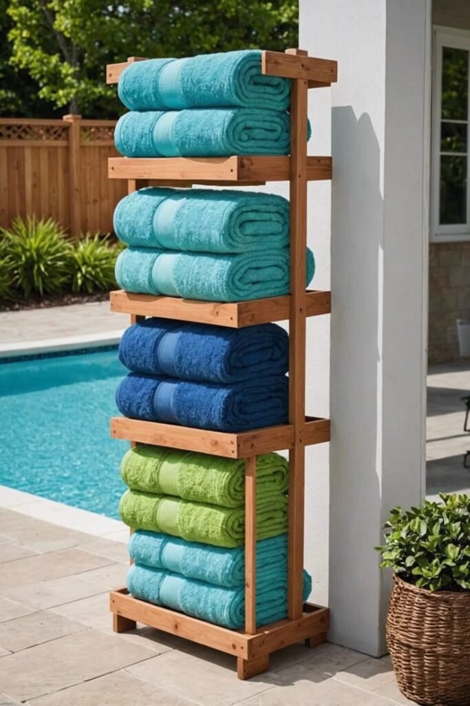 Having a good towel rack near your pool keeps towels organized and dry. It also makes your pool area look neat and inviting.