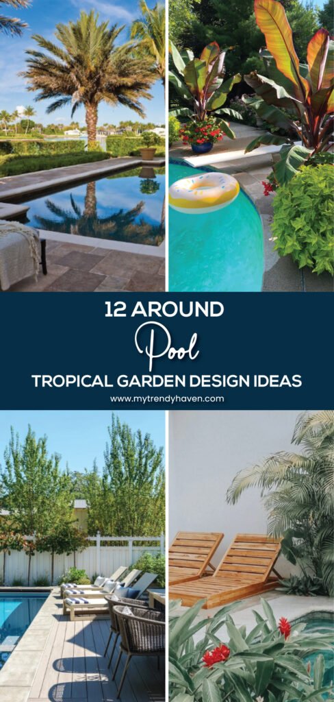 Stone pathways around the pool add structure and charm. Use natural stones like slate, sandstone, or flagstone for a tropical look. Curved paths give a more organic flow compared to straight ones.