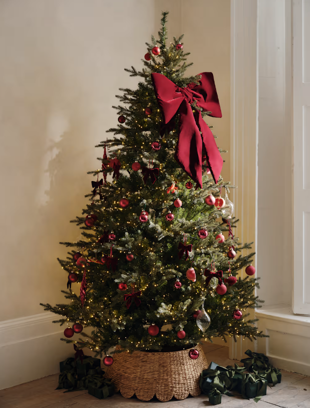 - Tree skirt: choose a simple woven or linen base that complements, not competes, with your decor.