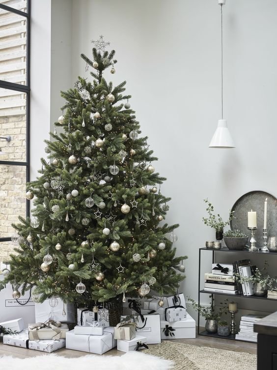 - Tree base: opt for a plain linen or neutral skirt that blends seamlessly into the palette.