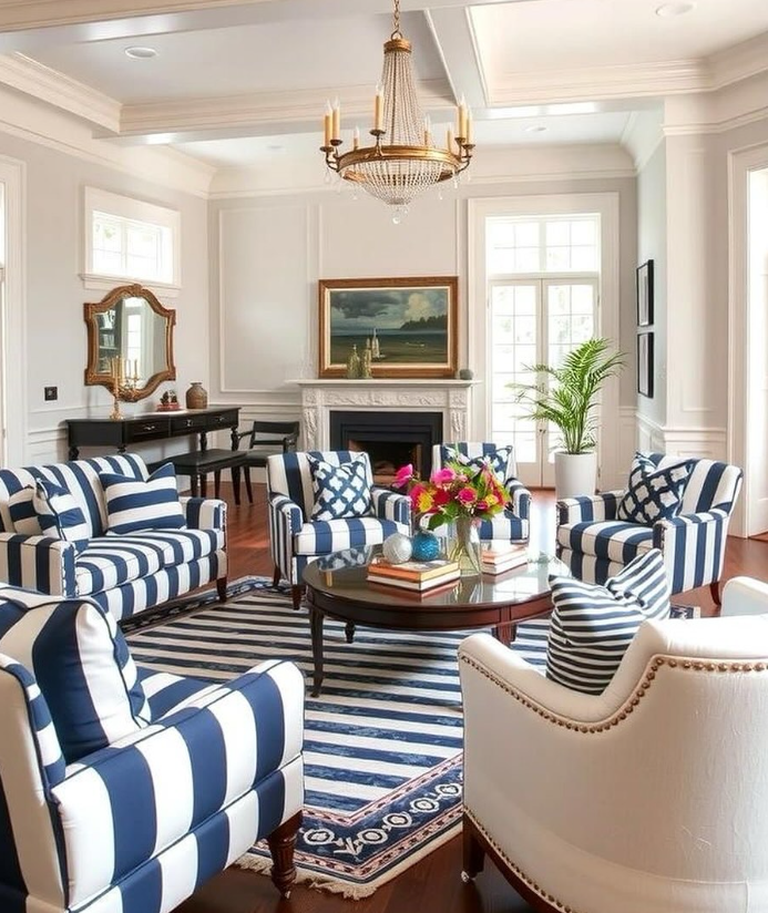 Classic striped patterns bring timeless charm and balanced sophistication to interiors. Use them on cushions, rugs, or sofas for a refined, organized look that complements both traditional and modern spaces. Try bold navy and white for contrast or subtle tone-on-tone for a softer appeal. Mix stripes with solids to create depth and a polished finish that feels effortlessly chic.
