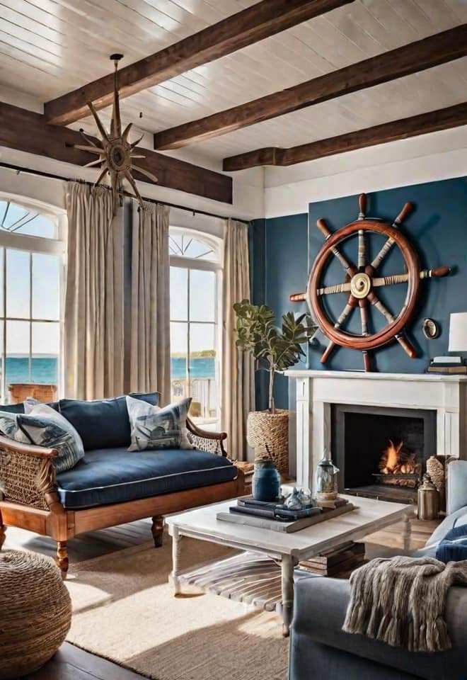 Bring seaside elegance into your living space with nautical inspiration rooted in Ralph Lauren’s coastal aesthetic. Combine navy, crisp white, and subtle red details for a balanced maritime palette. Add striped pillows, rope textures, and antique ship accents to deepen the theme. Light-toned wood furniture with a soft, weathered patina completes the scene, creating a breezy atmosphere filled with ocean-inspired sophistication.