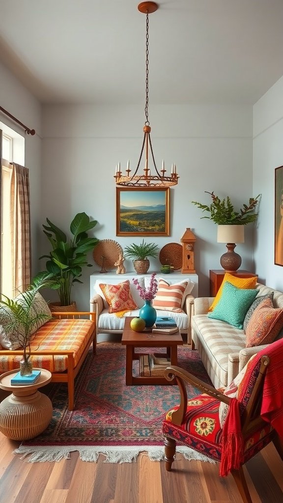 The Bohemian farmhouse living room is a perfect blend of cozy and eclectic styles. Imagine a space filled with warm wood tones, lush greenery, and colorful textiles. This room feels inviting and relaxed, making it an ideal spot to unwind after a long day.