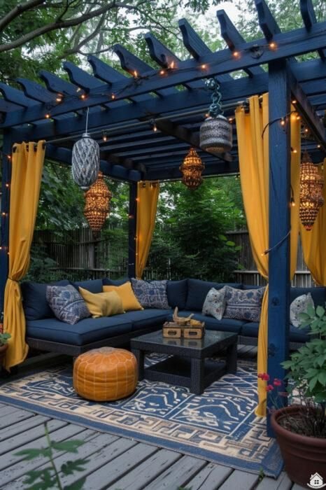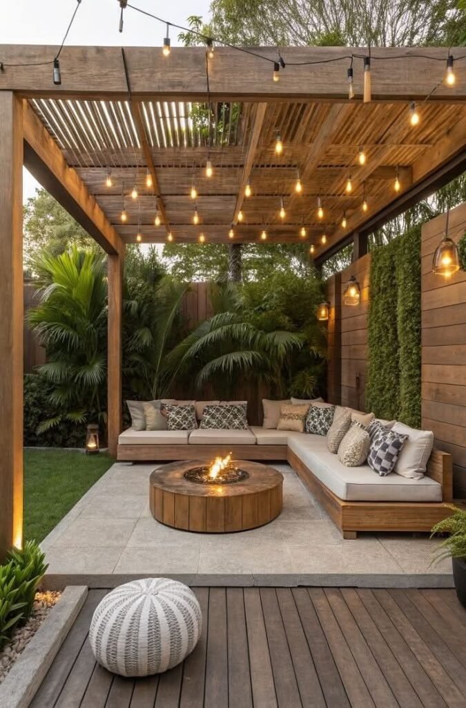 Create a welcoming evening atmosphere with outdoor string lights. Affordable and simple to install, they bring a soft glow that makes decks, patios, and gardens feel cozy. From draping them across railings to hanging above seating areas, string lights add charm and comfort, turning your backyard into an inviting spot for gatherings or quiet nights outdoors.