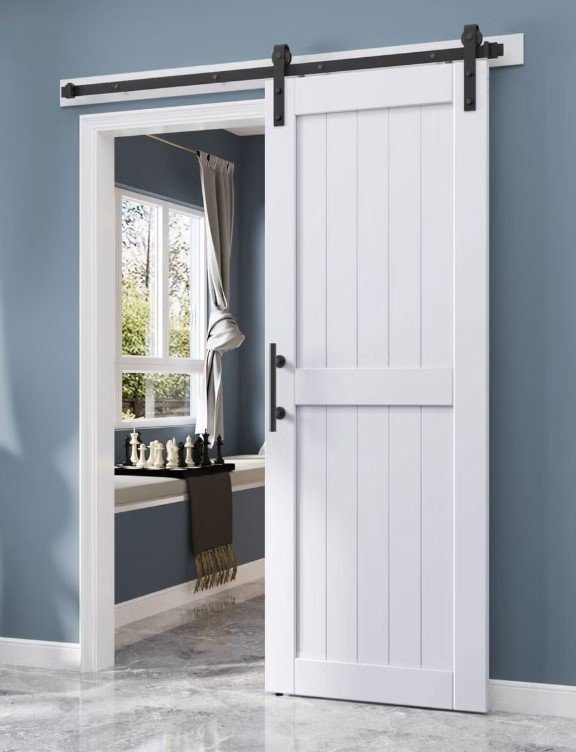 These doors glide smoothly along a track, saving space and adding character to any room. They fit almost any interior farmhouse, modern, rustic, or industrial.