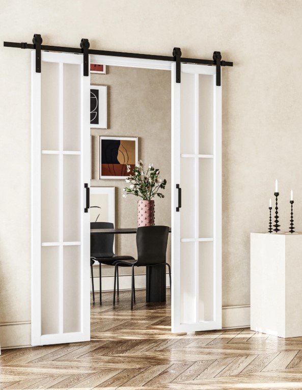 These doors are perfect for areas that need separation but benefit from shared light. For example, between a kitchen and pantry or an office and hallway. The frosted surface adds elegance without making the space feel enclosed.
