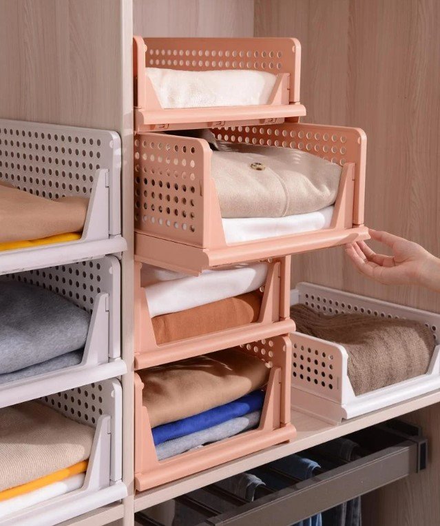 Stackable bins are ideal for organizing small apartments. They fit neatly in closets, under tables, or on shelves. You can store clothes, tools, cleaning supplies, or kids’ toys in them.