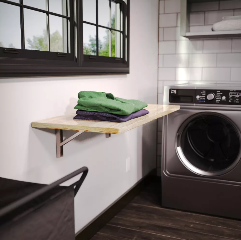 Save space with a fold-down wall-mounted table that flips open for use and folds flat when finished. Perfect for kitchens, laundry rooms, or small apartments, it adds function without taking up valuable floor area. A smart solution for compact living, offering convenience and style in one practical design.