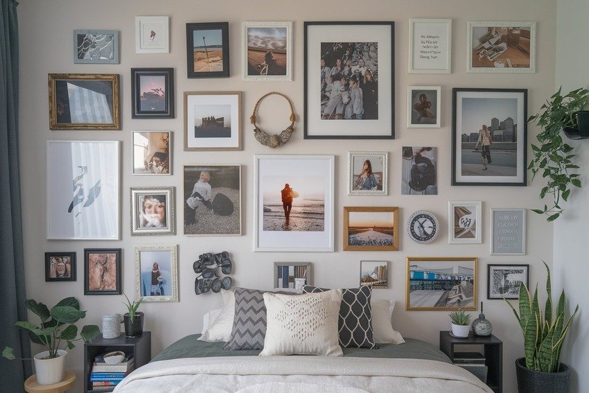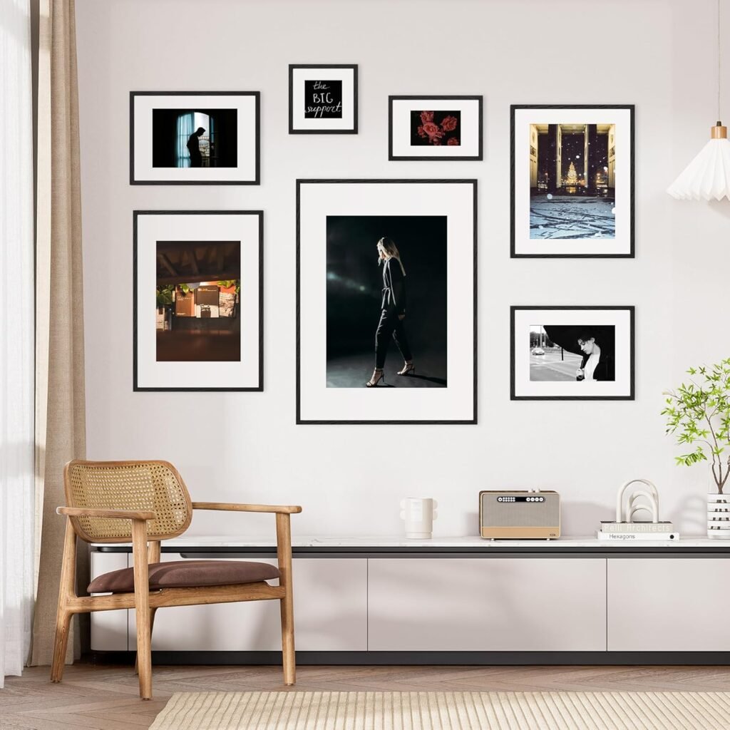 Mixing frame styles, sizes, and finishes adds character and depth to your walls. This approach creates visual contrast, highlights your artwork or photos, and gives your space a collected, artful feel.