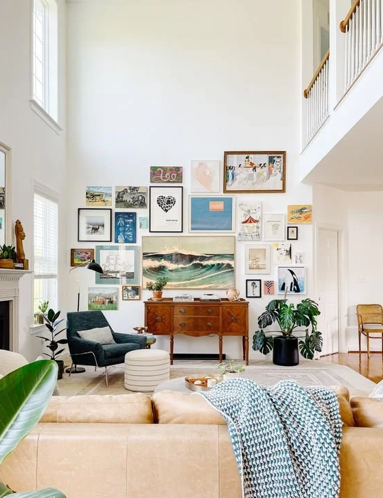 There’s something magical about a gallery wall that feels collected over time—especially when it embraces an eclectic spirit. This approach blends pieces from different eras, styles, and influences, connected through color, texture, shape, and finish. Forget the pressure of keeping up with trends or sticking to strict rules—your wall should reflect what makes you smile.
