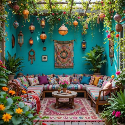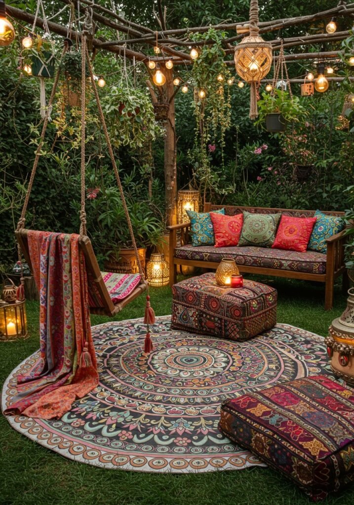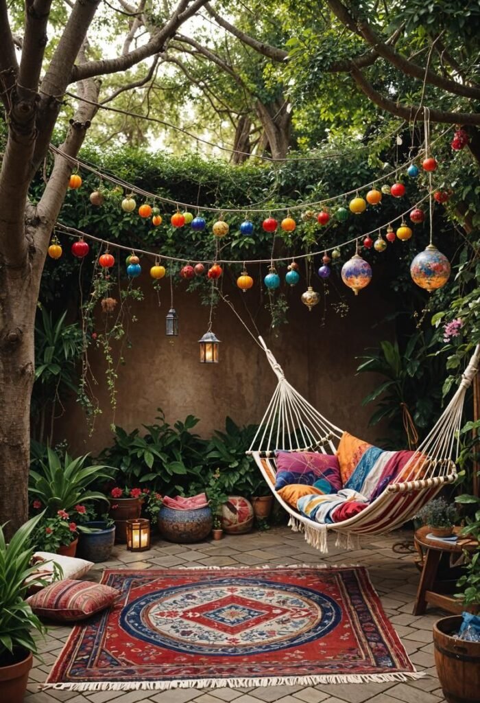 Create a cozy, free-spirited boho patio with layered textures, lush greenery, and eclectic décor for a space that’s inviting, stylish, and perfect for relaxing or entertaining outdoors.