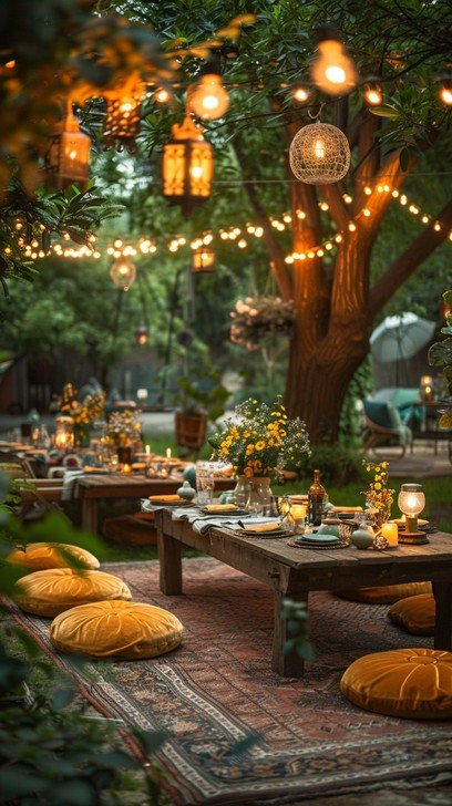 Dream of an outdoor space that feels effortlessly warm and full of personality? A boho-inspired patio blends patterns, textures, and natural elements into a setting that feels both relaxed and stylish. Picture woven furniture, colorful cushions, and soft throws under a gentle string of lights, creating a welcoming spot for everything from afternoon tea to starlit conversations. Add potted plants, macramé hangings, and low tables for a truly laid-back yet visually rich retreat.
