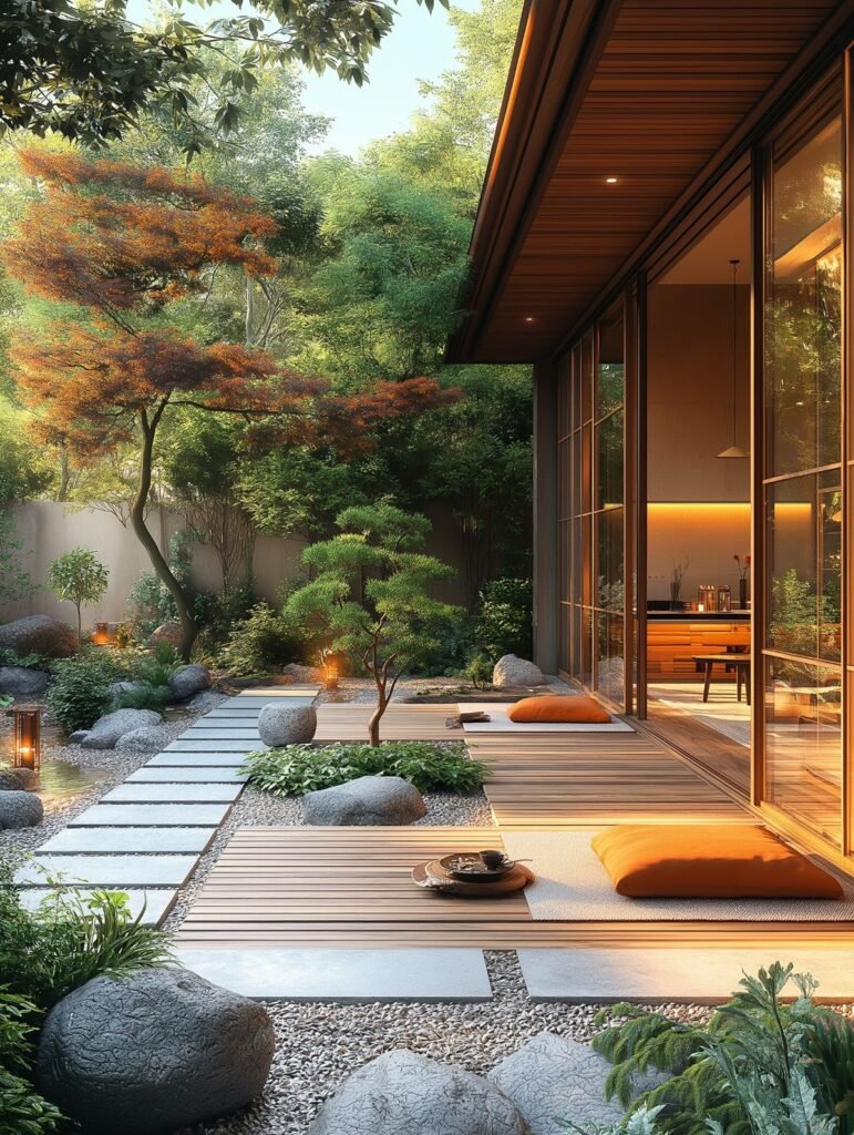 Simple seating arrangements, softly bubbling water features, and carefully placed lanterns foster an atmosphere of balance. Whether sipping tea at dawn or reading under the afternoon sky, this style turns your outdoor area into a serene retreat you’ll want to linger in.