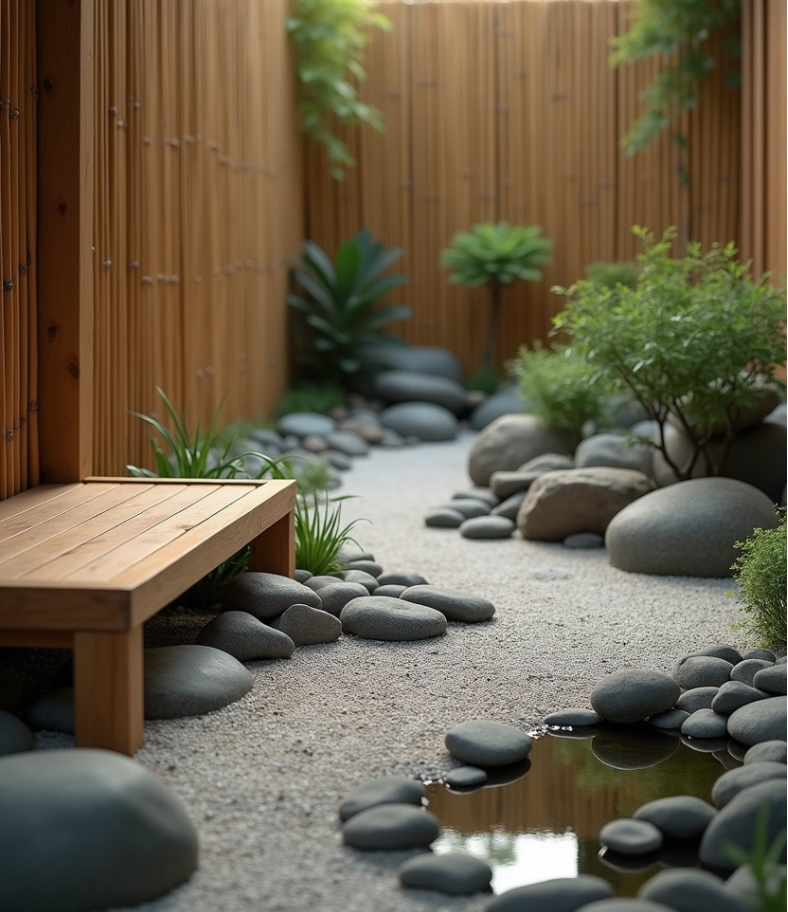 Imagine stepping outside and entering a space that encourages calm reflection and gentle connection with nature. A Zen-inspired patio blends earthy tones, smooth stone, and graceful greenery to form an environment where the mind can slow down.
