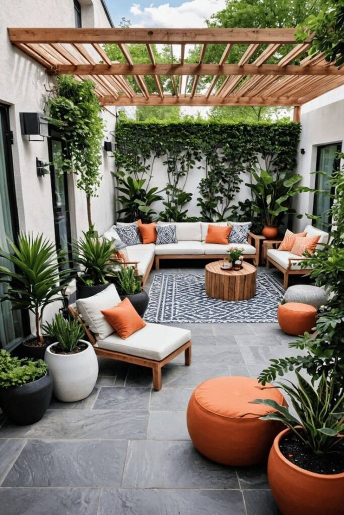 Elevate your patio with sharp lines, bold shapes, and structured layouts for a contemporary outdoor space that’s both stylish and functional.