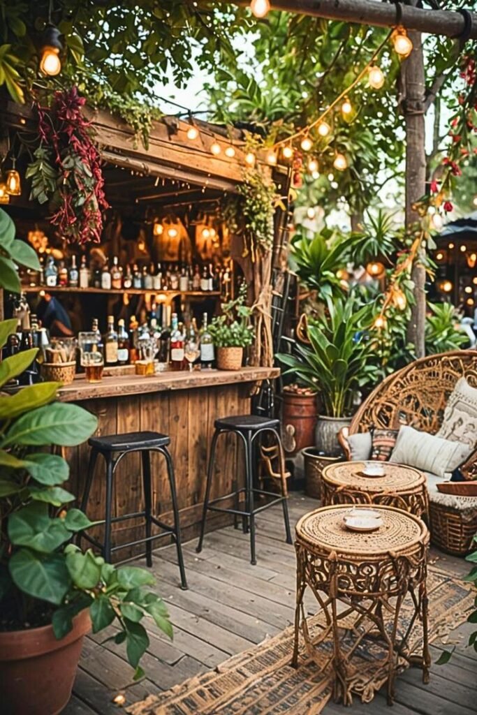 A boho-inspired bar is full of personality and color. It’s relaxed, artsy, and ideal for people who love casual gatherings.
