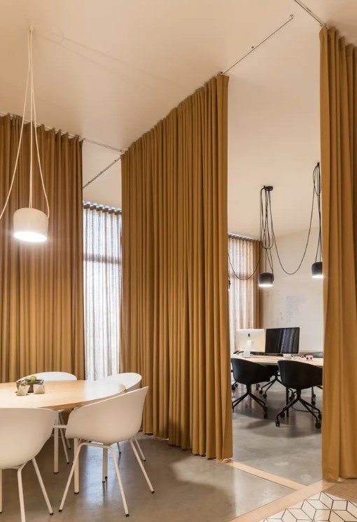 Use a light fabric so natural light still passes through. Curtains are easy to install and remove, making them a flexible way to add structure to your space.