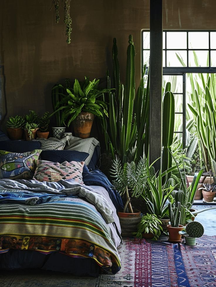Hanging plants add softness to corners and windows. Succulents in glass globes, ceramic pots, or macramé holders look beautiful suspended at different heights. They make empty ceiling spaces more interesting.