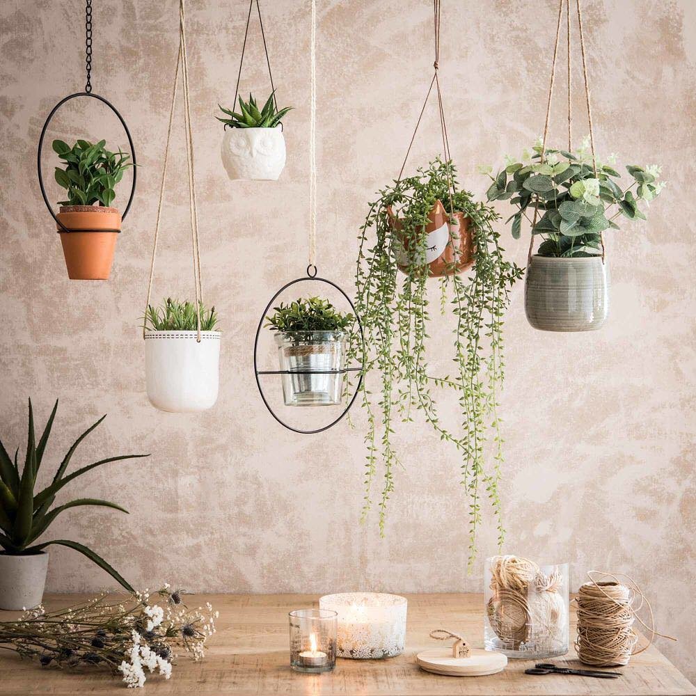 Care tip: Hanging plants dry faster because they get more airflow. Check soil often. Ensure the hooks or ceiling mounts are secure because pots can be heavy.