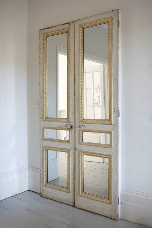 Add a mirror to a door for extra light and function. It expands tight spaces, bounces brightness, and pulls double duty without crowding.