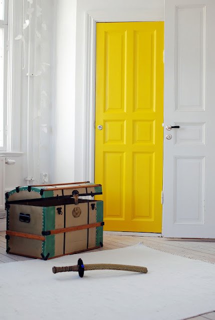 Straightforward stripes in different colours around this door is all it took to make it stand out.
