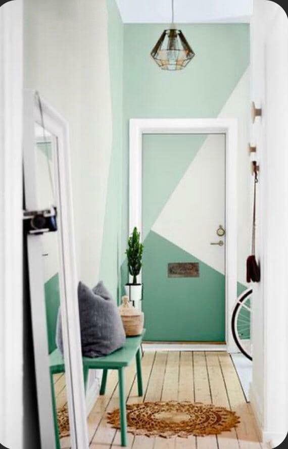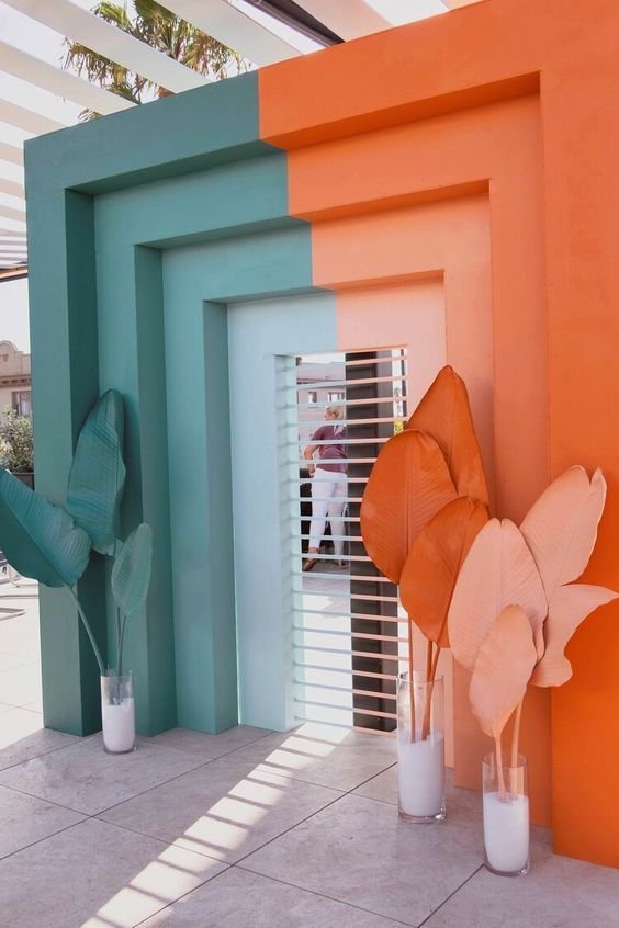 Here too, the contrasting orange painted in an uncomplicated manner around the door frame makes this wall look amazing.