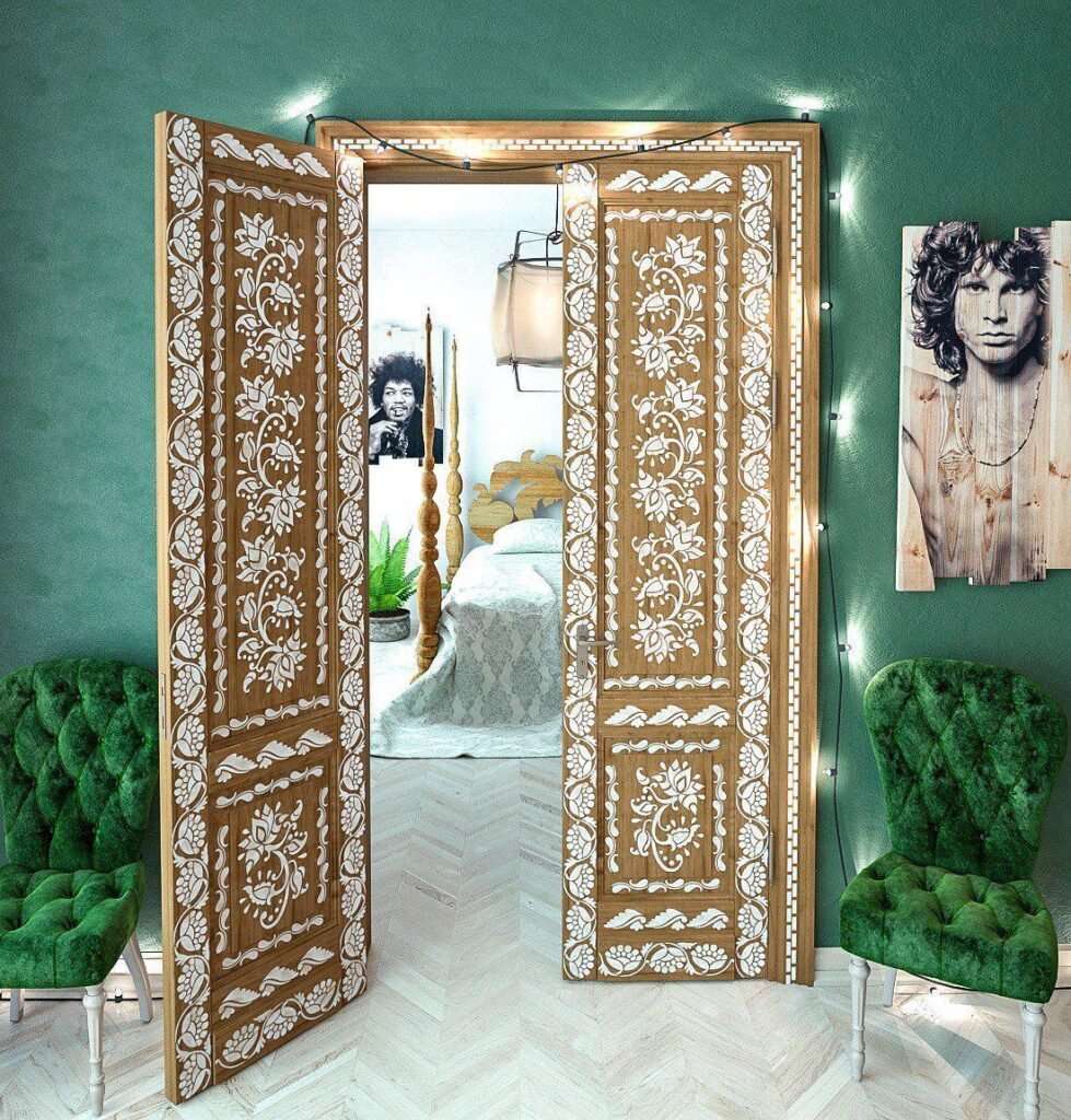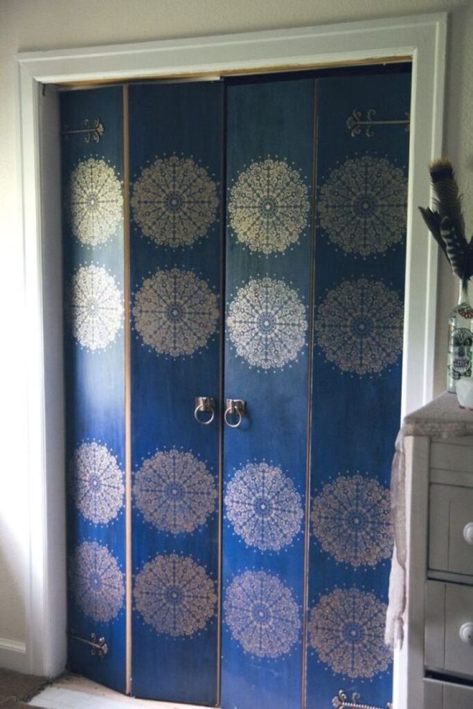 Again, stencil art looks just as stunning on wooden doors, so you don’t necessarily have to paint your doors to use stencils on them.