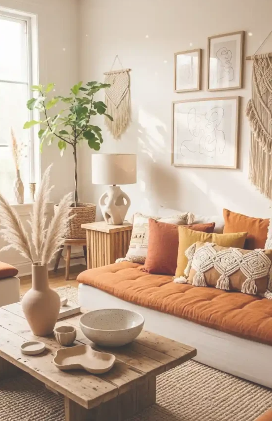 A warm boho living room blends earthy colors, organic textures, and free-spirited comfort into one soothing space. This look draws inspiration from nature—think clay, linen, and aged wood—to craft an environment that feels calm yet full of personality. With the right mix of layers and accents, your living room becomes a haven of comfort and quiet beauty.