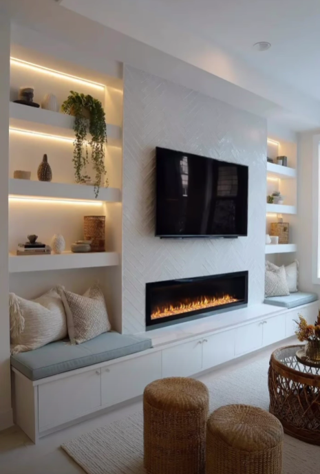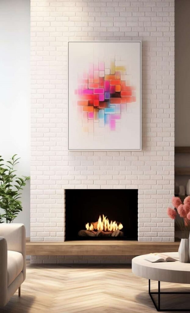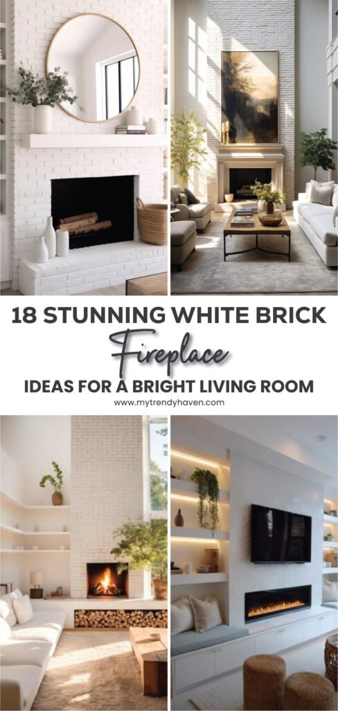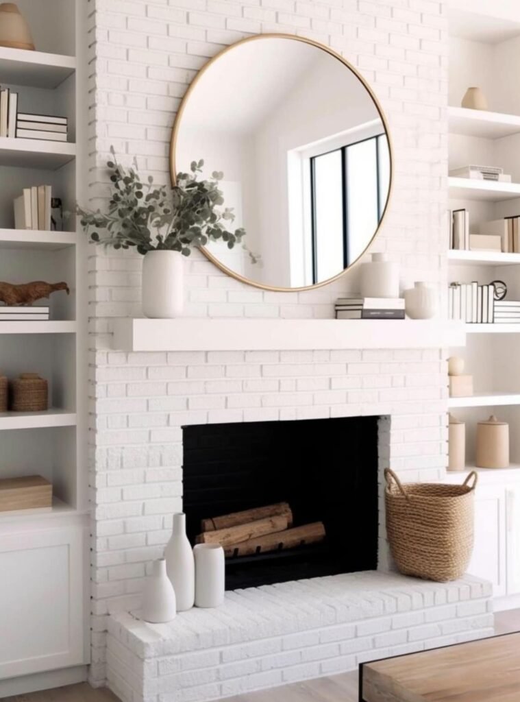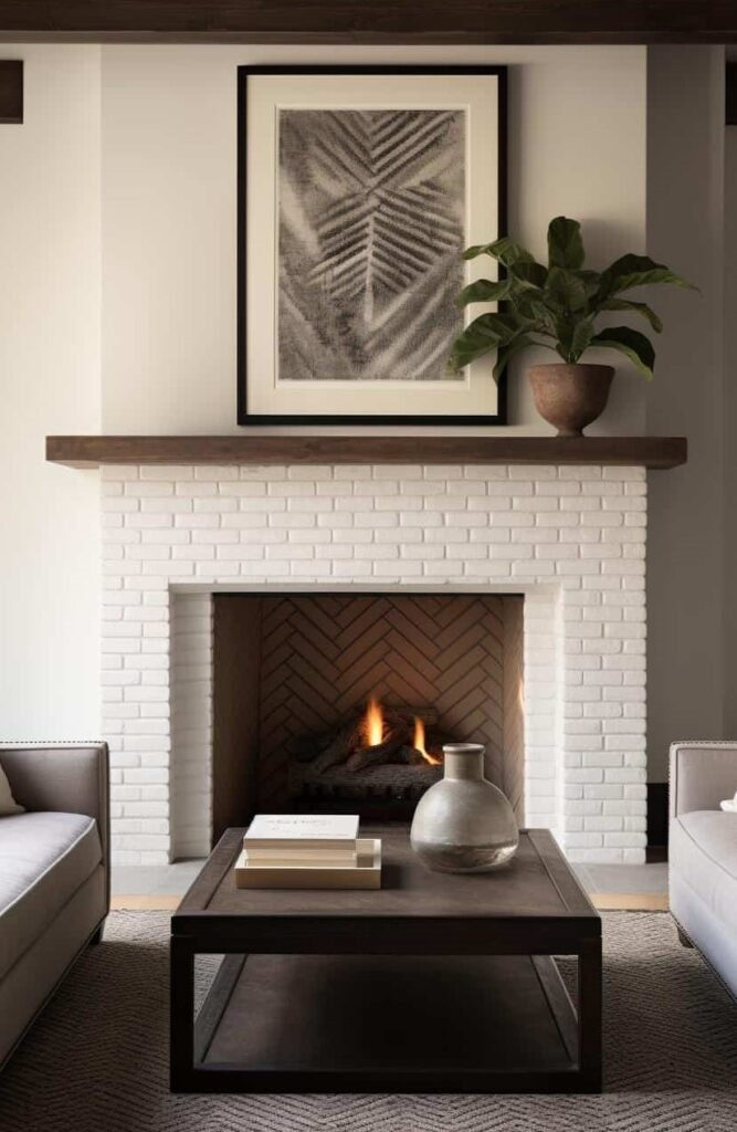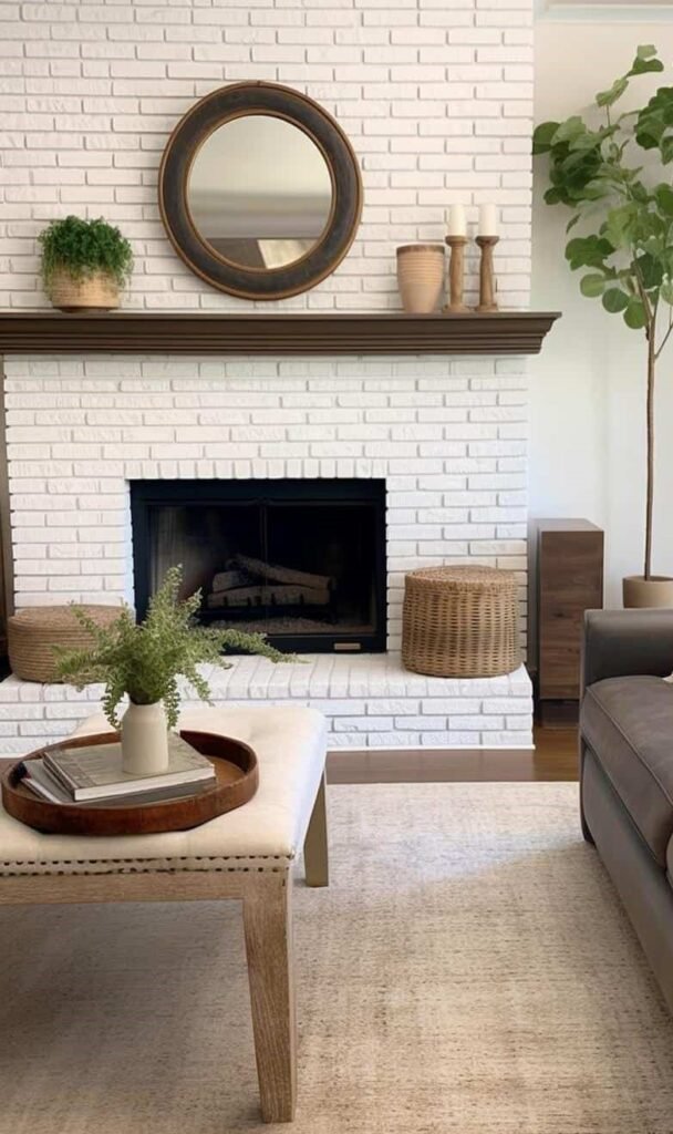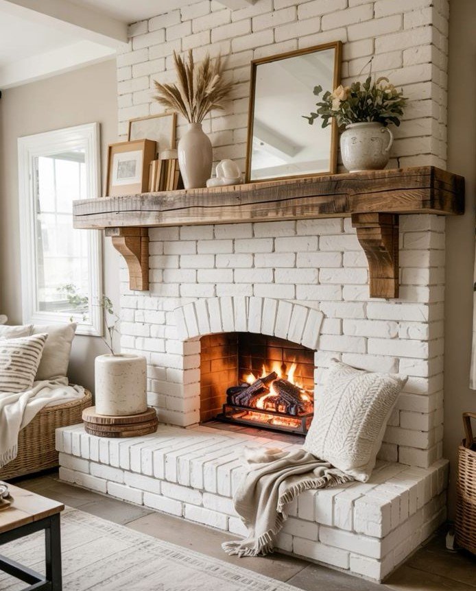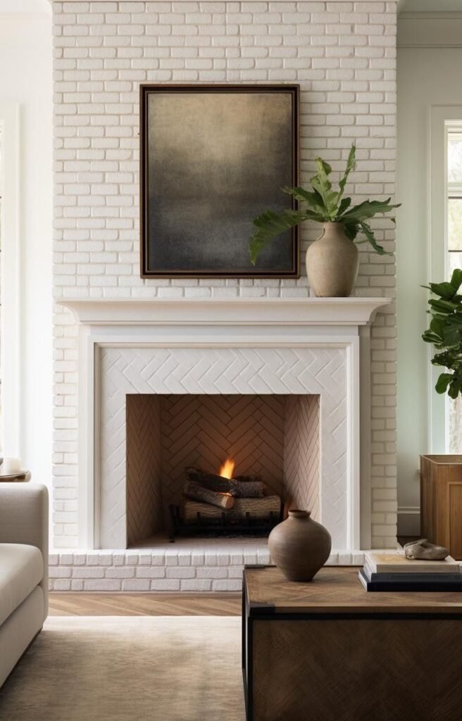 A white brick fireplace carries a quiet strength—clean, timeless, and full of charm. Whether paired with rustic textures, minimalist accents, or modern geometry, it becomes the heartbeat of a bright living room. Let contrast, texture, and thoughtful light guide your styling choices. Small shifts—a wood mantel, fresh greenery, or a bold mirror—can completely reshape the mood while keeping the space open and welcoming. Let your fireplace glow as the defining statement of your home’s warmth and character.
